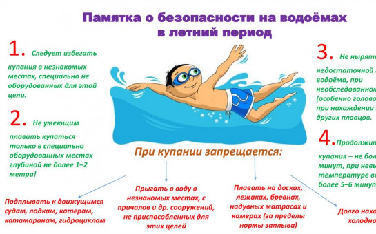 Летом на водоемах следует соблюдать определенные правила безопасного поведения. Во-первых, следует избегать купания в незнакомых местах, специально не оборудованных для этой цели.